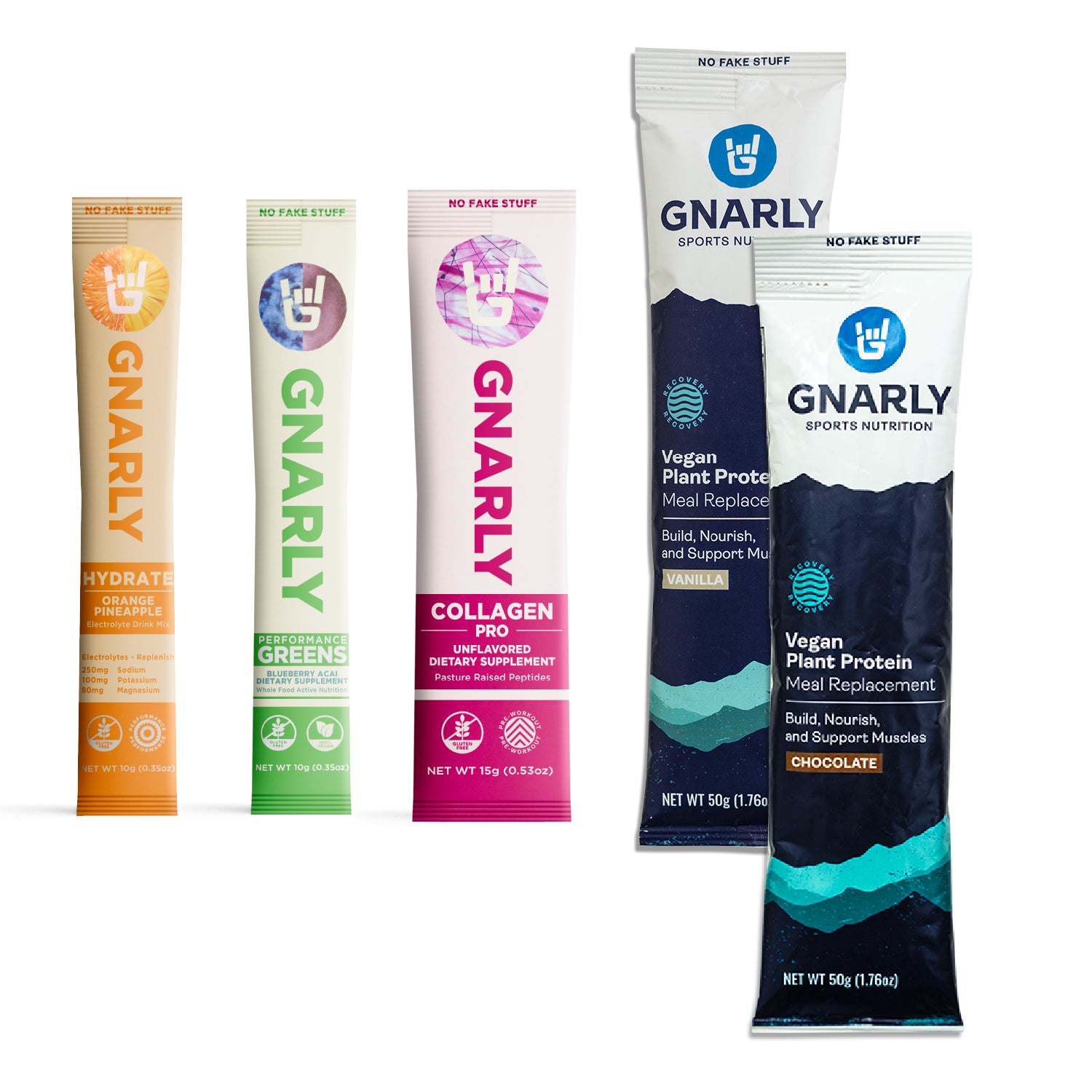 • Both Chocolate and Vanilla Stickpack in your choice of Whey or Vegan Protein.  An often overlooked component of an active lifestyle is recovery.  Gnarly makes some of the best tasting protein available and both our whey and vegan options kickstart muscle protein synthesis while also repairing muscle damage and reducing recovery time.